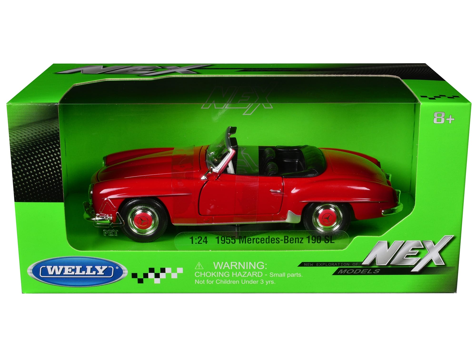 - Brand new 1/24 scale diecast car model of 1955 Mercedes-Benz 190 SL Red “NEX Models” Series die cast model car by Welly.