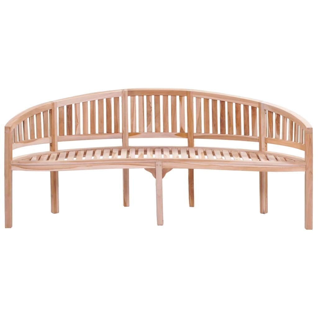 This garden bench is a brilliant addition to any indoor or outdoor space, perfect for those who value style and comfort. Made from solid teak wood, it features a lovely warm brown color and elegant banana shape, making it a great seating solution for gardens, patios, or living rooms. It easily fits three people, making it a fab spot for family and friends or for chilling with a good book and a cup of tea.