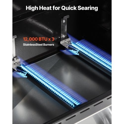 VEVOR Gas Grill, 3 Burner Propane Gas Grill with Spacious 338 SQ.InGrilling Area, Carbon Steel Enamel Grates, Outdoor 36,000 BTU PatioGarden BBQ Grills with Foldable Side Shelves, Carbon Steel