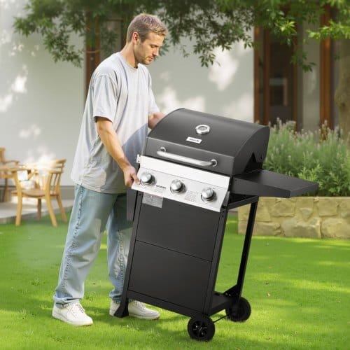 Be the first to review “Gas Grill, 3 Burner Propane Gas Grill with Spacious 338 SQ.In Grilling Area, Carbon Steel Enamel Grates, Outdoor 36,000 BTU Patio Garden BBQ Grills with Foldable Side Shelves, Carbon Steel”